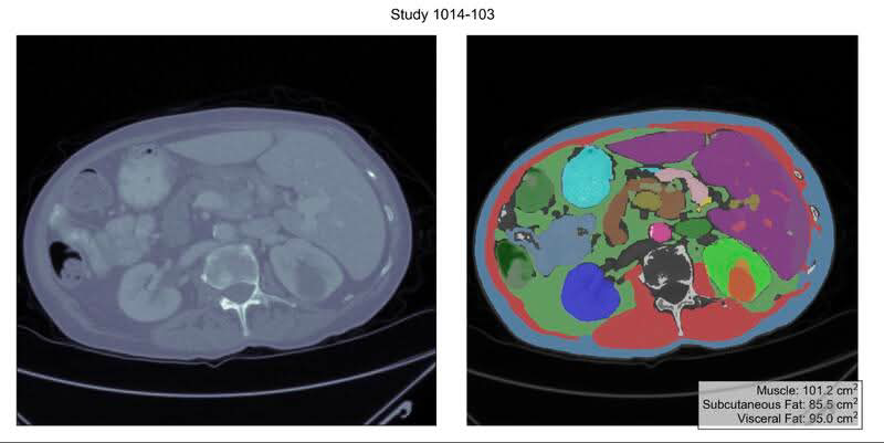 Applied segmentation pipelines by integrating AbdomenAtlas with a body-composition repository, generating full abdominal maps including both organ and fat segmentation